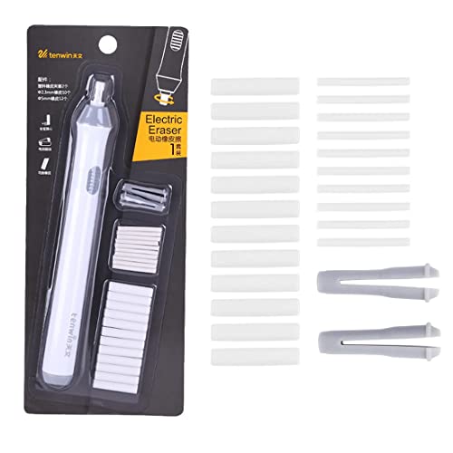 Penna elettrica per cancellare a batteria, con 2 ricariche per cancellare e 22 pezzi di gomma, per apprendimento, ufficio, architettura, bianco
