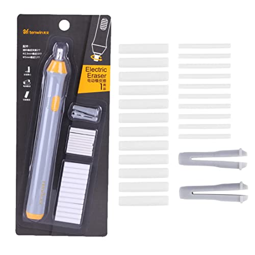 Penna elettrica per cancellare a batteria, con 2 ricariche di ricambio e 22 gomme, per apprendimento, ufficio, architettura, colore grigio