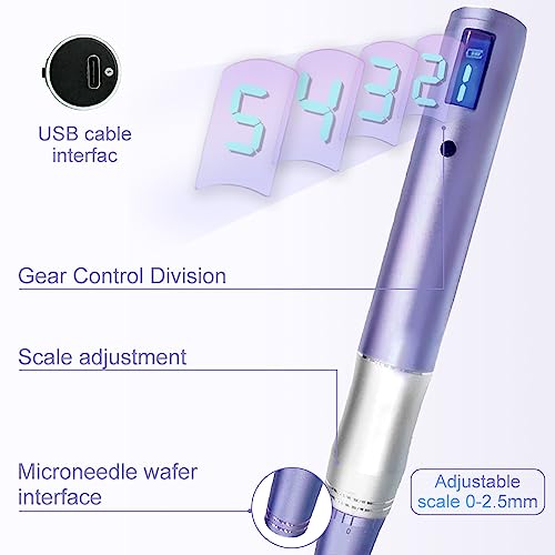 Penna Elettrica Microneedling 0-2,5 mm con schermo LCD e 5 livelli, Elettrico Dermapen microneedling,professionale strumento di riparazione della pelle con microneedle per ringiovanimento, anti rughe