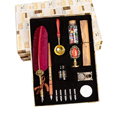 Kit di Penna a Immersione e Inchiostro, JasCherry Penna Piuma Vintage con Sigillo di Cera, Inchiostro e 5 Pennini di Ricambio, Penne per Calligrafia per Firma, Diario, Scrittura e Disegno