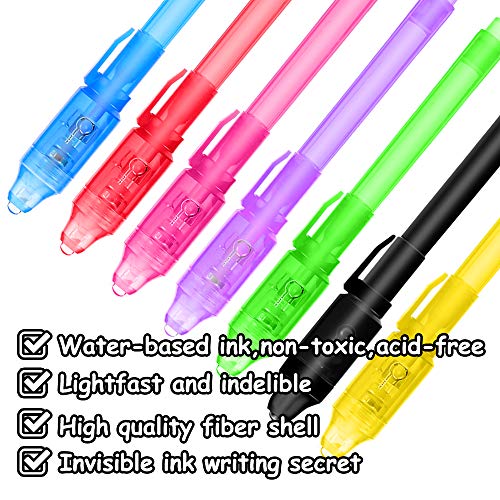 Penna a Inchiostro Invisibile 14 Pezzi, con Luce UV per messaggi Segreti Ideale per Feste di Compleanno per Bambini e Regali di Natale