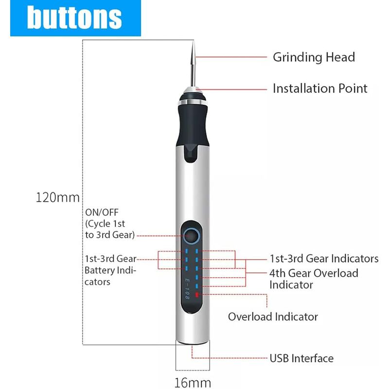 USB Wireless Engraver - Questo strumento per incisione è dotato di batteria al litio e ricaricabile tramite interfaccia USB. L'uso senza fili durerà fino a 30 minuti di inattività dopo una ricarica completa. Facile aiutarti a completare un mestiere inciso meglio. [Regolazione visibile della velocità] La penna per incisione in metallo è dotata di un eccellente motore, fino a 10 W di potenza durante il lavoro. 3 posizioni regolano la velocità di rotazione da 5000 a 18000 giri/min per applicare diverse situazioni. Questa penna per incisione portatile e compatta è comoda da portare ovunque tu voglia e ti consente di goderti un rilassante momento di creazione di gioielli. [Vari punte per smerigliatura] Gli strumenti per incisione fai-da-te includono 1 penna per incisione, 20 punte rotanti 2,35, 3 in acciaio inossidabile dischi da taglio in acciaio (20mm, 23mm, 30mm), 1 stelo 35mm. Tutte queste punte sono sufficienti per lavorare su incisione, intaglio, levigatura, lucidatura, incisione