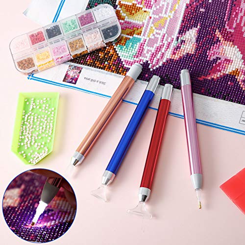 4 Penna Pittura Diamante a LED per Trapano Penna Pittura Diamante 5D Illuminata Accessori per Pittura a Diamante con 20 Colla per Pittura, 9 Teste di Penna (Rosa, Oro, Blu, Rosso)