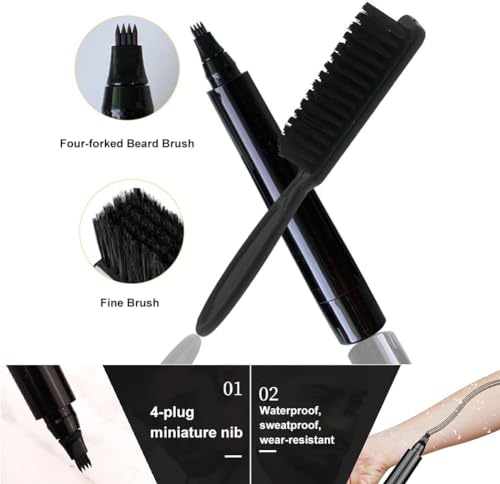 Kit Penna per Riempimento Barba,Matita per Barba e Pennello per Barba,Beard Filling Pen Kit,Beard Pencil Filler,Impermeabile Lunga Durata Strumenti per Scolpire Barba E Modellare Le Sopracciglia,Nero