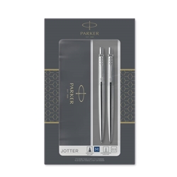 Set Duo penna a sfera Parker Jotter M Stainless Steel CT + Portamine 0,5 mm - argento