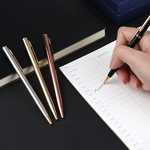 Penna a sfera a 4 pezzi, penna a sfera in metallo con rotazione a doppia testa, forniture per ufficio/hotel, inchiostro nero, privato o regalo (nero, oro rosa, oro, argento)