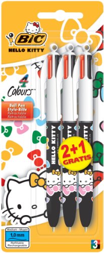 BIC - Penna a sfera a scatto"Hello Kitty 4 Colours", 4 colori, ampiezza tratto: 0,4 mm, blister da 2 + 1 pezzi