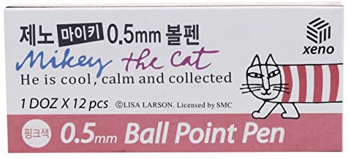 Xeno - Penna a sfera sottile da 0,5 mm, Mikey the Cat Calm and Collected, colori assortiti, 12 pezzi (rosa 12p)