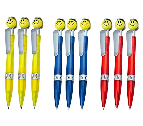 Wpro, Penna a sfera Sunny, 8 pezzi, adatte per ogni occasione, come regalo o per il compleanno dei bambini, per ragazzi e ragazze, penna blu con smile, penna per bambini Wpro Sunny, ideale per la festa di compleanno dei bambini, penna blu, 4 colori Mix di colori