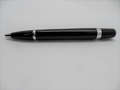 ✍️ PENNA A SFERA con apertura a rotazione. E' di metallo, rivestito da una resina laccata nera. Finiture in metallo lucido con una parte del fusto aperta e rivestita da materiale finemente retato. L'apertura è a rotazione, basta ruotare la parte superiore, posta sopra il fermaglio.