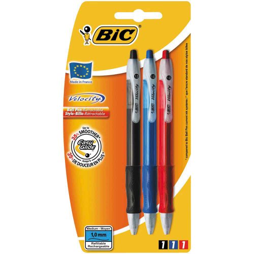 BIC - Penna a sfera Velocity, 3 pezzi, assortite