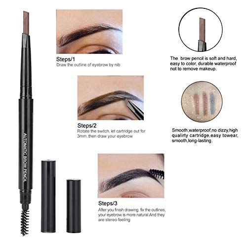 Penna per sopracciglia a 5 colori Punta triangolare impermeabile a lunga durata professionale Matita per sopracciglia a rotazione automatica a doppio uso con pennello per trucco cosmetico(Light Brown)