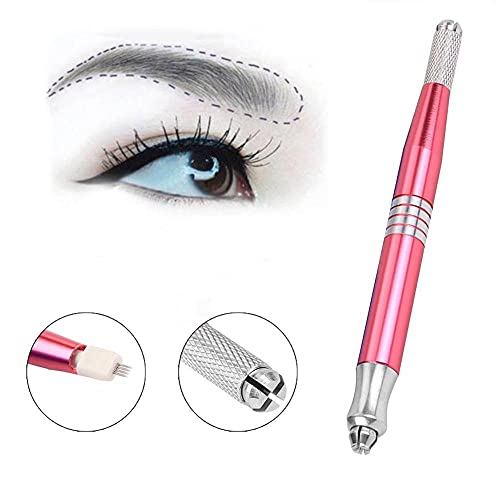 Penna per Sopracciglia Tatuaggio Microblading Permanente Trucco Manuale Macchina Microblade Strumento, Aghi per Tatuaggio Fit(Pink)