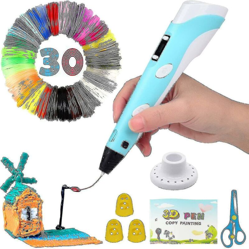 Kit pronto per l'uso - include 30 colori (90 metri) in plastica PLA, che consente di creare graffiti a lungo, nonché cavo dati USB (senza adattatore), stampa, forbici, letto di dita isolanti termici, scheda copia trasparente e libro di immagini. Basta collegarlo, riscaldalo e goditi il piacere di creare un capolavoro 3D. Il PLA è una plastica di stampa versatile e facile da usarsi, molto adatto per principianti e utenti avanzati. [Facile da usare Pen 3D] Inserire l'adattatore sul retro della penna e selezionare i materiali di consumo. La luce rossa è in corso per indicare il riscaldamento, che richiede circa 2-3 minuti. Fare doppio clic sul pulsante frontale per avviare e fornire il filamento sul retro della penna. Una volta che il filamento raggiunge la penna della penna, fare clic in avanti per fermarsi. Premere e tenere premuto il pulsante frontale o fare doppio clic per funzionare continuamente. Dopo aver completato il design, premere e tenere premuto il pulsante invertito per