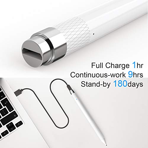 Stile a punta superfine: realizzato in lega di alluminio di alta qualità, dotato di una punta in gomma solida da 1,6 mm, senza parti in plastica, sensazione di penna reale, che fornisce un controllo eccellente e garantisce un'esperienza di scrittura fluida e sensibile sul tuo touch screen.