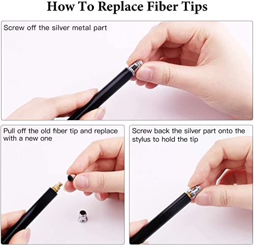 Punte in fibra sostituibili: queste penne stilo su entrambe le estremità della punta in gomma sono sostituibili. La sostituzione può essere eseguita in pochi secondi senza attrezzi. 20 punte in gomma di ricambio extra incluse (10 punte in gomma piccole e 10 grandi), prolungano efficacemente la durata dello stilo.