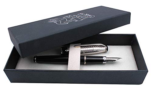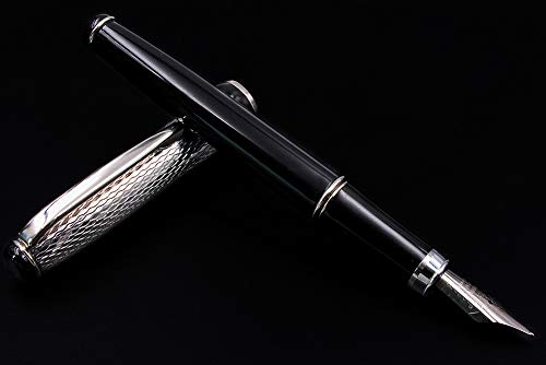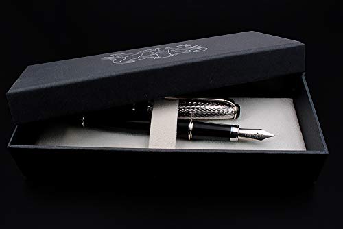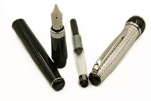 Penna Stilografica in Argento Massiccio 925 e Lacca Nera con cartucce e converter