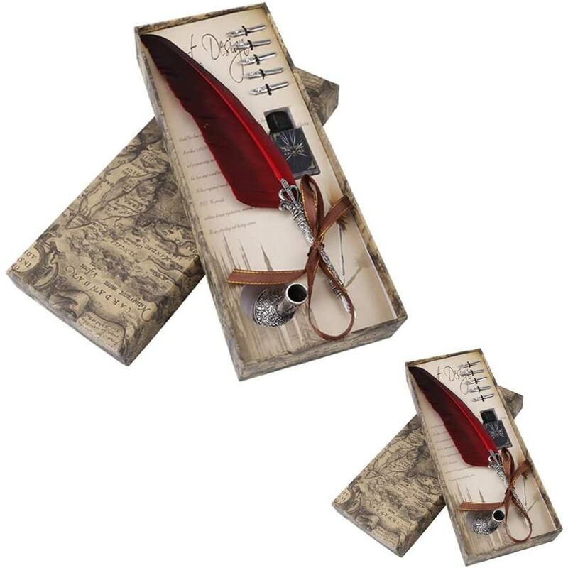MATERIALE: realizzato in piuma naturale e materiale in lega, elegante, antico, resistente e può essere utilizzato a lungo CARATTERISTICA: puoi scrivere 20-30 caratteri inglesi o 20-25 cinesi caratteri dopo aver immerso l'inchiostro una volta ASPETTO PIACEVOLE: il pennino è fatto a mano e abbiamo il colore rosso e nero sul sito Web, puoi scegliere il colore che ti piace PENNINO GRANDE: pennino realizzato in lega ad alto contenuto di materiale, liscio per la scrittura, resistente all'usura e non facile da danneggiare.Sarà una decorazione molto elegante e bella da mettere sulla tua scrivania QUANTITÀ: confezione inclusa di 1 pezzo di pennino e 5 tronchesi di ricambio per immersione, 1 flacone di inchiostro e 1 base per pennino in grado di soddisfare le diverse esigenze e facilmente per l'uso Descrizione del prodotto set di penne a immersione< br> Un eccellente set di pennarelli per il tuo molteplici scopi di scrittura, è un regalo perfetto per compleanno, Natale, Capodanno liscio per la