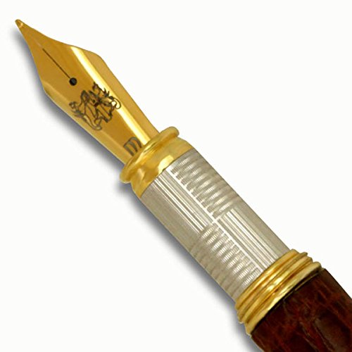 Penna Stilografica in Pelle di Alligatore e Argento Massiccio 925 Pennino Medio