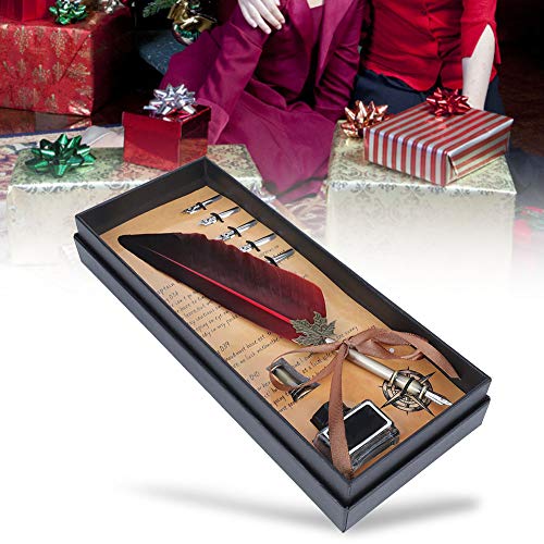 Set di penna stilografica piuma, Penna Della Piuma di Calligrafia Penna Stilografica Antica Penna Stilografica Piuma con Stelo in Metallo, 5 Pennini,Inchiostro Nero bottiglia e Scatola Regalo (Rosso)