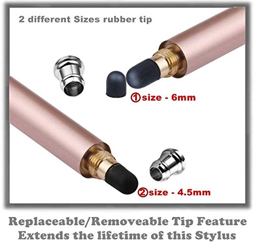 B&D Penna per Tablet Capacitivo 2-in-1 Pennino per Touch Screencon con 20 Punte di Ricambio in Gomma per iPad/iPhone/Samsung Galaxy/Xiaomi/Huawei - OroRosa