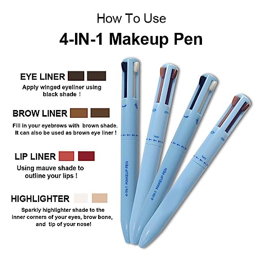 ➩Crea facilmente un trucco perfetto: con questa penna per il trucco 4 in 1, puoi trasformare sopracciglia, occhi, labbra ed evidenziatore in pochi minuti. Ha ricariche colorate che sono facili da usare e sfumare. Il design della penna intelligente ti consente di cambiare colori e funzioni con un semplice .