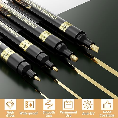 Pennarelli Acrilici Pennarello, 4 Pezzi Pennarelli Marcatori Vernice Permanente, Impermeabile e riflettente, Pennarelli per Pittura su Roccia - Oro