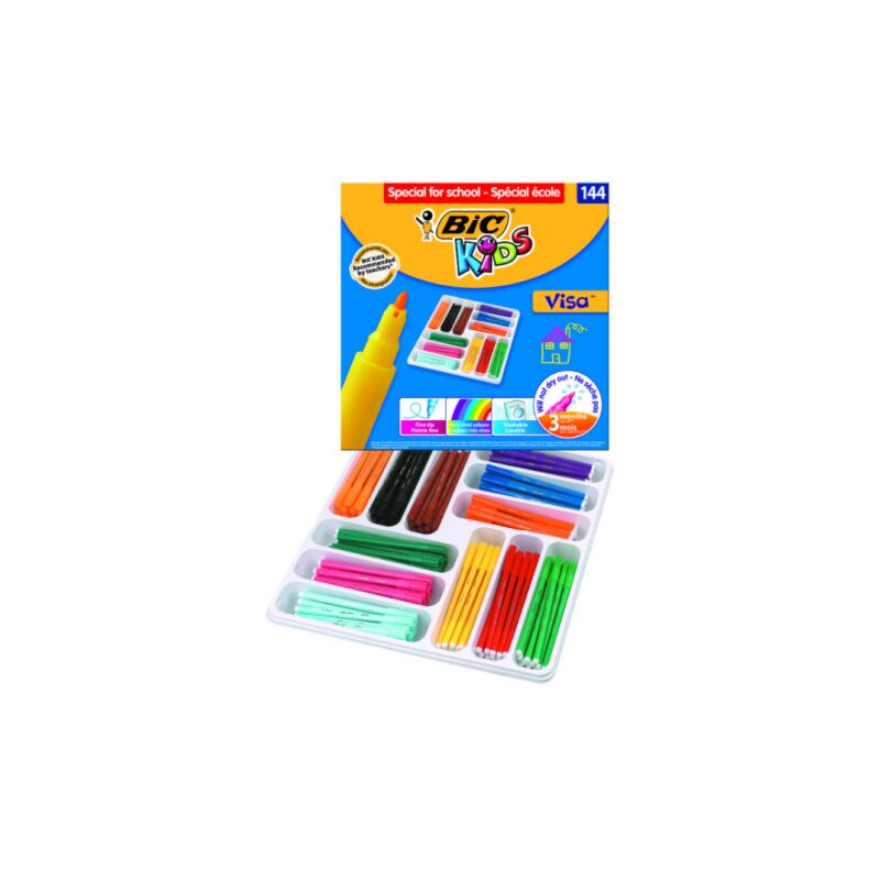 Pennarello astuccio-144-penna-12-colori-diversi-bic-887837 Perfetto per tracciare linee sottili e colorare piccole aree per bambini dai 5 anni in su. A base d'acqua, punta media. Non si secca anche se lasciato scoperto per 3 mesi** Lavabile sulla maggior parte dei tessuti. Punta resistente alla pressione. Punta: 2,00 mm Tratto: 0,90 mm.