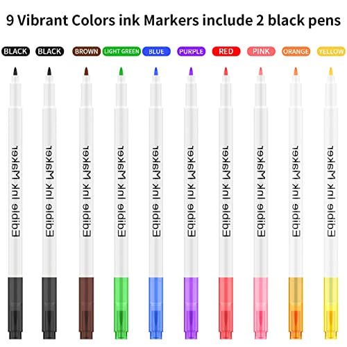 Pennarelli commestibili E-Kongton: pennarelli per decorazioni alimentari, a doppia punta, commestibili, per decorare macarons, biscotti, torte, disegnare uova di Pasqua, set di 9 colori (2 neri)