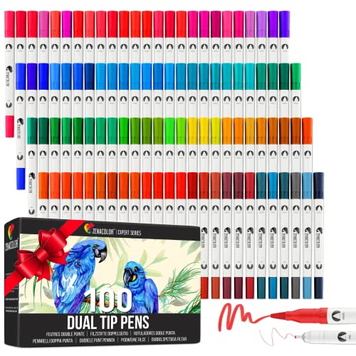 AMPIA SCELTA DI COLORI VIVACI E INTENSI - Zenacolor propone un set di 100 pennarelli a doppia punta fine e a pennello per dare il via alla creatività divertendovi con 100 colori spettacolari, vivaci e intensi. Soddisferanno le aspettative,i vostri desideri e i vostri bisogni artistici. Colori a pennarello per adulti.