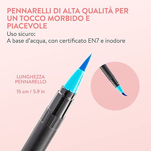 COLORI VIBRANTI E VERSATILI: Tutti i nostri colori sono pigmentati e aggiungeranno vita e colore alle tue opere d'arte. Queste penne a pennello sono ideali per il lettering, il bullet journal, la pratica della calligrafia, i disegni artistici.