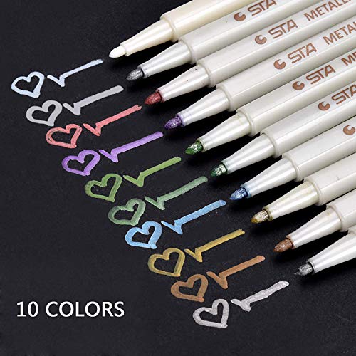 Wotr Set di 10 pennarelli Metallizzati, Colori Assortiti, per Compleanno/Auguri/Biglietto Regalo, Fai da Te, Album Fotografico, Uso su Qualsiasi Superficie di Carta, Vetro, plastica e Ceramica