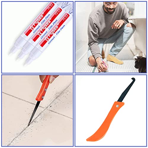 【Easy Fix】Le fughe graffiate o scolorite possono essere facilmente riparate utilizzando pennarello per fughe piastrelle lungo le linee.penna sbiancante fughe mattonelle sigilla e protegge le fughe.penna per malta bianca impermeabile copre efficacemente urti, abrasioni e graffi su piastrelle, ceramica, ecc.penna per stucco per piastrelle penna per st