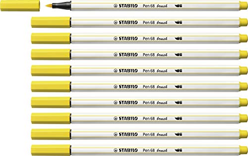 Pennarello Premium con punta a pennello - STABILO Pen 68 brush - Confezione da 10 - Giallo