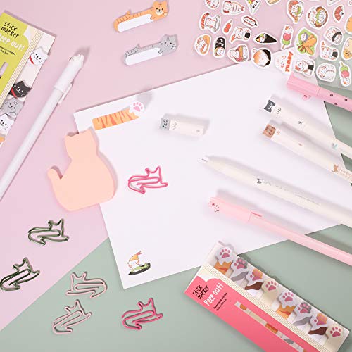Set di penne adesive per gatti, con 9 penne a inchiostro gel, 30 graffette a forma di gatto e adesivi per gatti a forma di gatto, kit per schede di indice per casa, scuola, ufficio