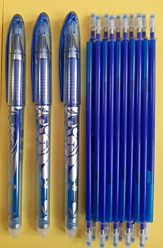 PENNE CANCELLABILI 23 PEZZI INCHIOSTRO A GEL PUNTA DA 0,5mm 3 PZ. BLU + 20RICARICHE ADATTE PER SCUOLA E UFFICIO (Blu)