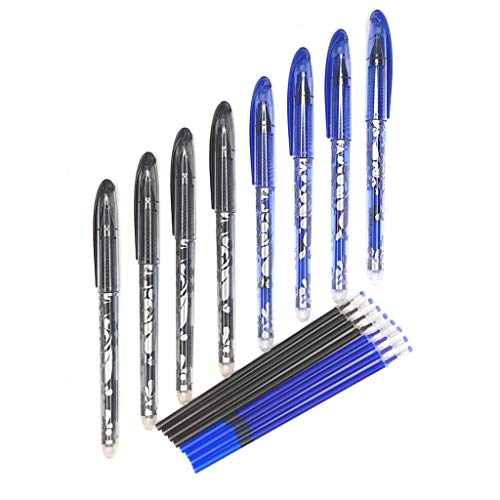 PENNE CANCELLABILI 16 PEZZI INCHIOSTRO A GEL PUNTA DA 0,5mm 8 PZ. BLU E NERA + 8 RICARICHE ADATTE PER SCUOLA E UFFICIO