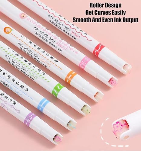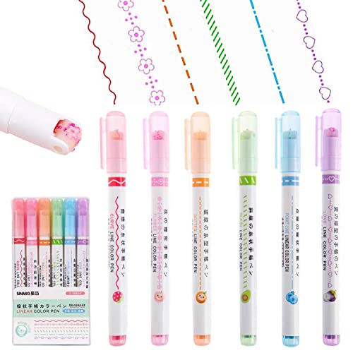 ADSQ Set di Penne Curve Colorate, Colored Curve Pens, 6 Different Curve Shapes, Multiple Pattern Fine Tip Colored Markers, School Supplies, for Journaling, DIY, Highlighting, Dotted Line