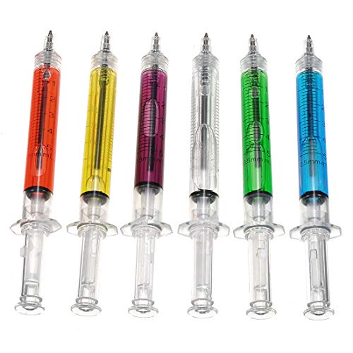 6 penne a forma di siringa, punta a sfera, alla moda, per ospedale, infermiere, casa, scuola, ufficio (colore casuale)