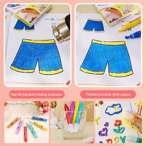 Effetto magico: la penna Magic Puffy fai da te offre un effetto soffio unico e magico quando riscaldata con un asciugacapelli, evidenzia la tua arte con consistenza. Vedrai i nostri figli sorridere al sorprendente cambiamento.