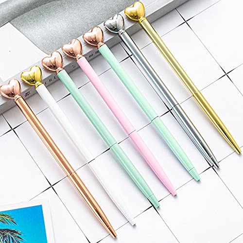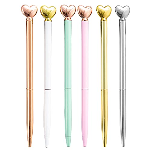 6 penne a sfera a forma di cuore carino Bling metallo penna a sfera forniture per ufficio