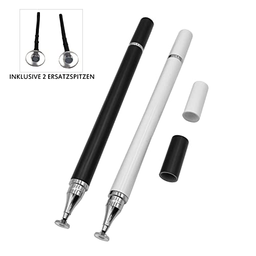 2 penne a sfera universali 2 in 1, compatibili al 100% con tutti i tablet e smartphone (bianco e nero)