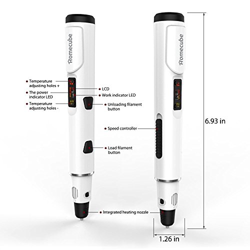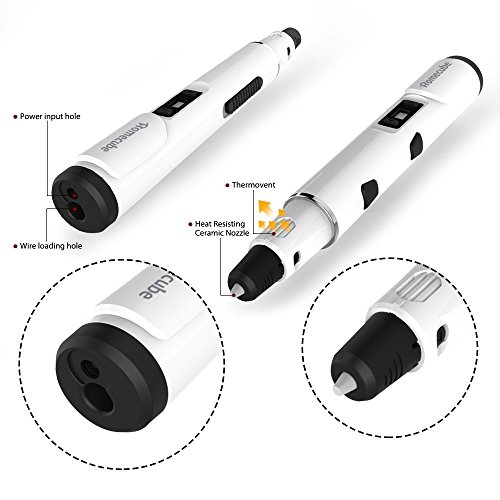 Penne per Stampa 3D, Homecube Penne per Stampa 3D Arti del Mestiere Doodle Penna con Schermo LCD, Supporto di Sicurezza e 3 Free 1,75 millimetri PLA Filamento Ricariche / Compatibile con ABS / PLA Materiale (Bianco)