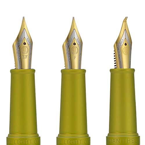 Set di 3 penne stilografiche Hongdian (punta fine, extra fine e piegata) colore: oro, serie 1850, 1851, 6013, 517S e 517D.