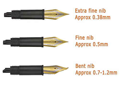 La confezione include: 3 pennini dorati con sezione (1 x pennino EF 0,38 mm, 1 x pennino F 0,5 mm, 1 x pennino piegato 0,7-1,2 mm)
