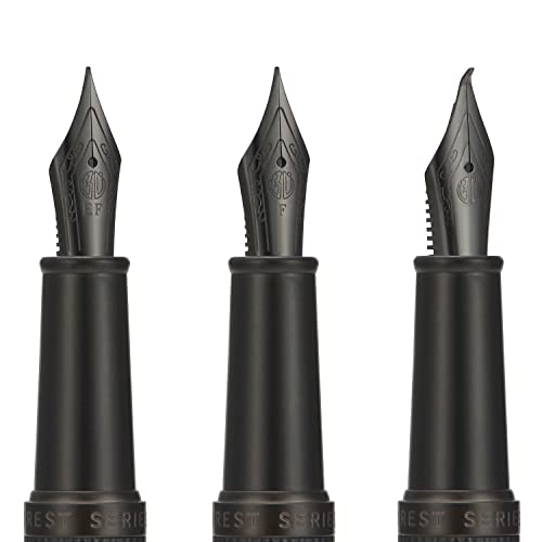 Set di 3 penne stilografiche Hongdian (punta fine, extra fine e piegata) colore: nero, serie 1850, 1851, 6013, 517S e 517D.