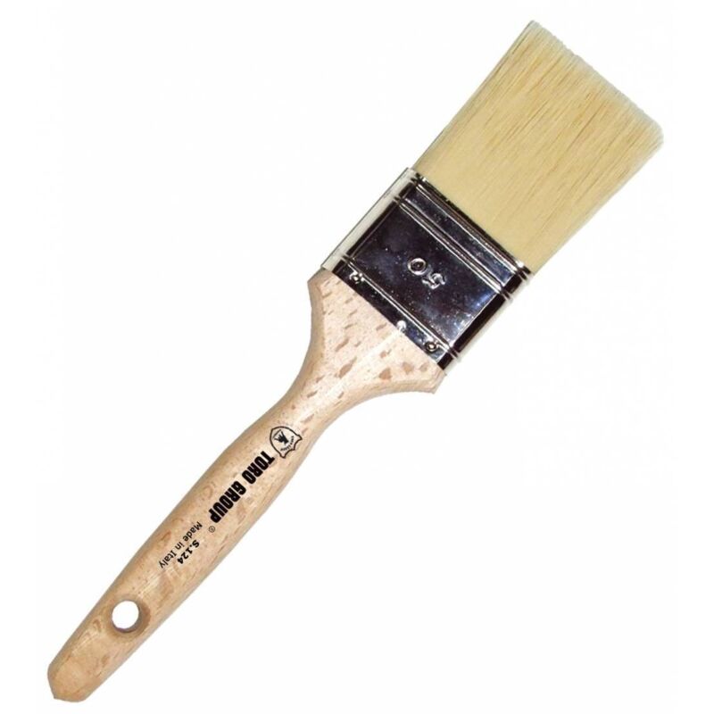 In syntetic biondo, manico in legno, ghiera nichelata. Per smalti sintetici e all acqua. Larghezza 60 mm