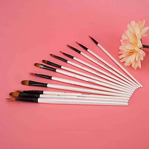 Pennelli per acquerelli, 12 pezzi Asta per capelli in nylon bianco perlato Spazzola per capelli in acrilico Artista Pennello per acquarello per pittura a olio[Punta Di Nocciola]Set di pennelli