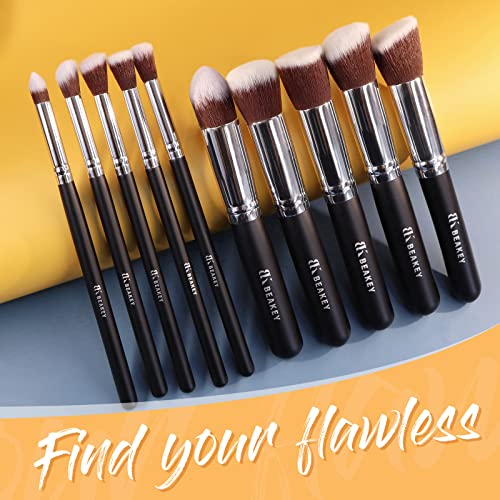 Pennelli Make Up BEAKEY Premium Synthetic Set di Pennello da Trucco Fondazione Cipria Fard Ombretto Kit con Pennelli Trucco (10 + 2 Pezzi Nero/Argento)