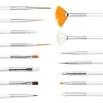 15 degli strumenti Nail Art hanno perlato bianco, manici in legno. 1 spazzola W/testa ad angolo. Il dotter a doppia sono in legno non verniciato.